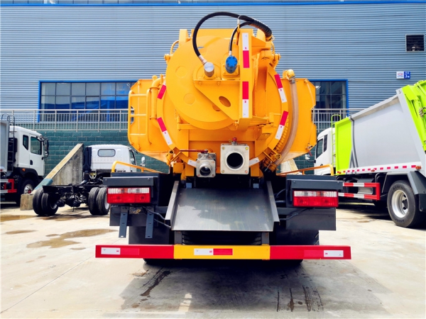 吸污部分:3.8方污罐,罐体5mmQ235优质碳钢,配淄博SK-9水循环泵(北方地区可选装真空油泵),8米吸污管一根,进气管加过滤网,防溢阀加高,后盖卡扣锁紧,前视污亮管,后尾部加装1个力拓牌**mm、150mm的球阀均带进出口,罐体带举升功能,后门带液压开启。
